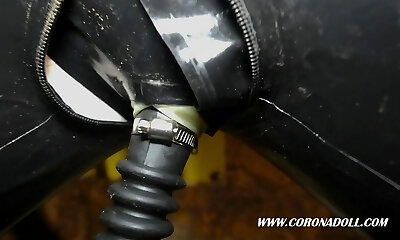 Spandex rubber doll in fuck-rubber dress.